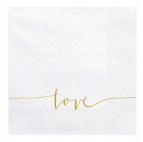 Serwetki białe ze złotym napisem love trójwarstwowe 20 szt.