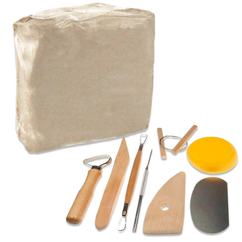 Zestaw do modelowania w glinie w skład, którego wchodzą: glina rzeźbiarska 5kg. oraz zestaw narzędzi.
