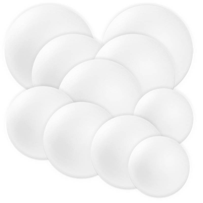 Zestaw 10 kul styropianowych w różnych rozmiarach: