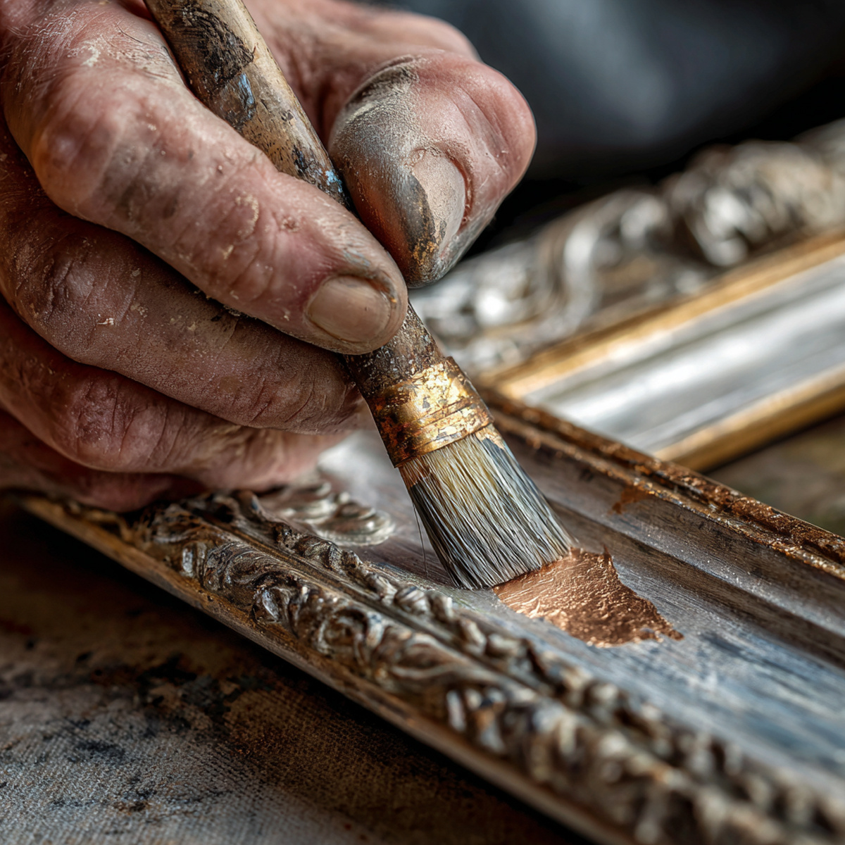 Jeśli chcemy cały przedmiot pokryć złoceniem, na powierzchnię należy nałożyć równą warstwę kleju do złoceń - do nakładania kleju najlepiej sprawdzi się pędzel.