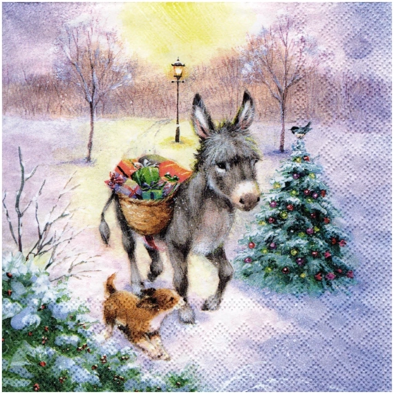 Serwetka 33x33cm - Gifts Delivery osiołek z prezentami