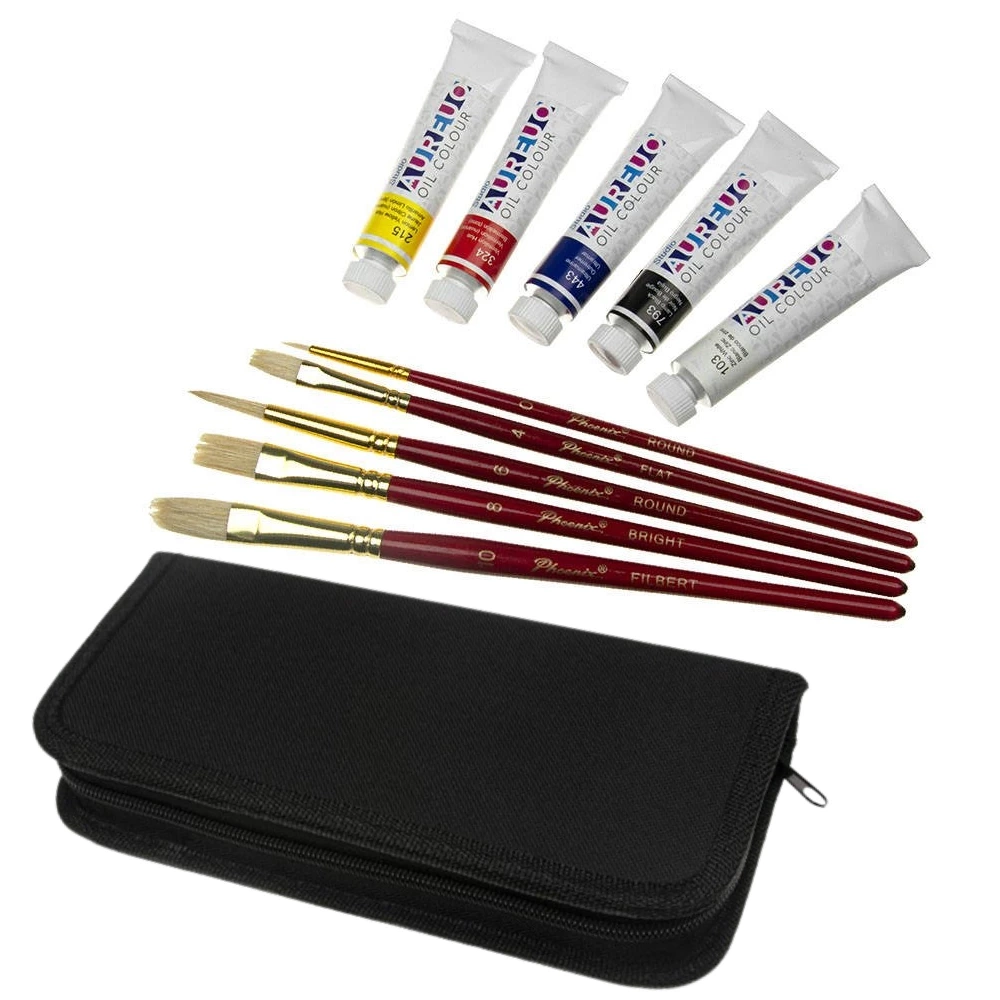 - zestawu malarskiego w etui Phoenix - farby olejne 5x12 ml, 5 pędzli