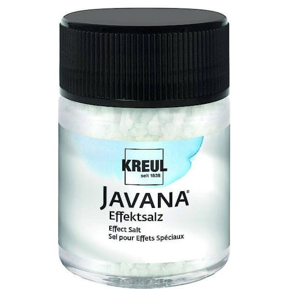Sól do efektów specjalnych do tkanin marki Kreul o pojemności 50ml. Za pomocą medium - soli do efektów specjalnych w połączeniu z farbą do jedwabiu Kreul Javana można uzyskiwać magiczne wzory. Należy posypać pojedynczymi ziarenkami soli mokre, kolorowe powierzchnie. Podczas procesu suszenia pojawiają się ciekawe, przypadkowe wzory. Po wyschnięciu sól jest należy usunąć.