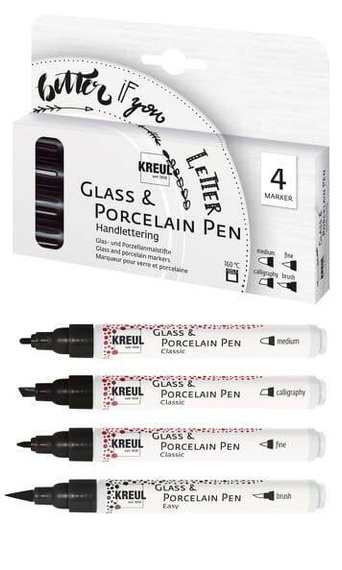 Pisaki do szkła i porcelany Handlettering Kreul 4szt Zestaw