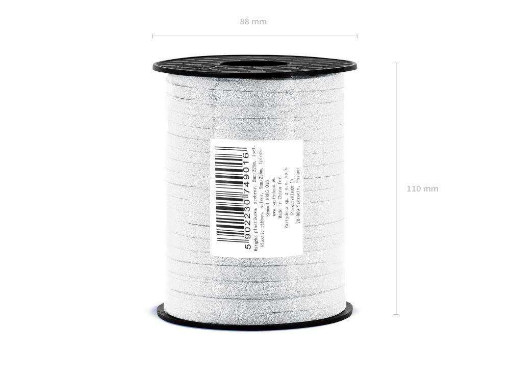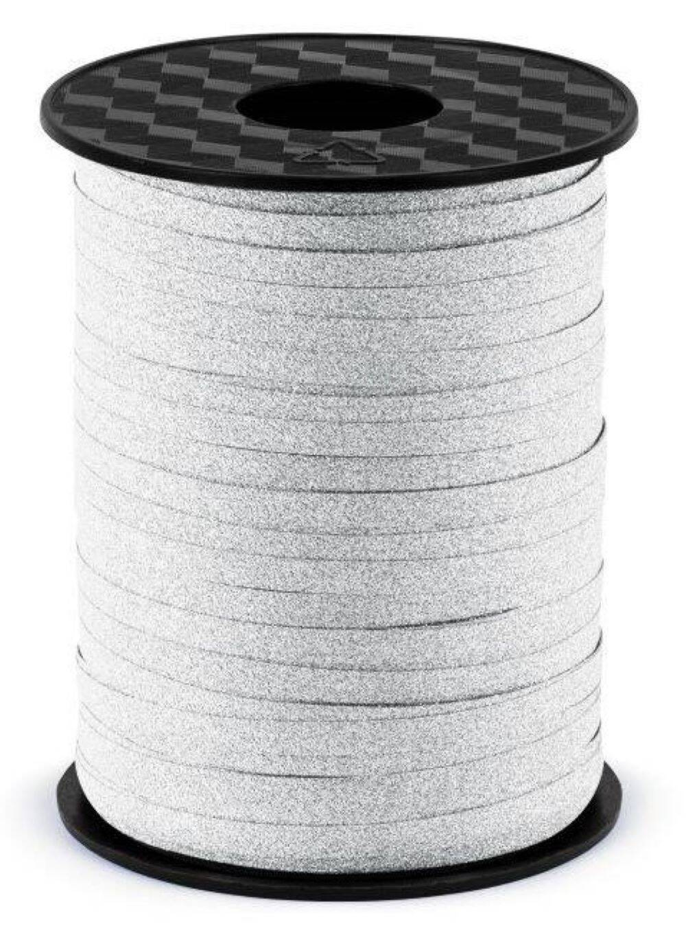 Wstążka świąteczna brokatowa do pakowania 5mm - 225m srebrna