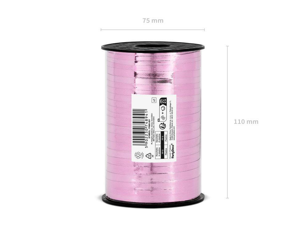 Wstążka świąteczna metalizowana do pakowania 5mm - 225m różowa