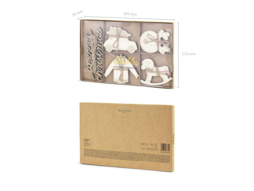 Drewniane zawieszki dekoracyjne z brokatem mix świąteczny