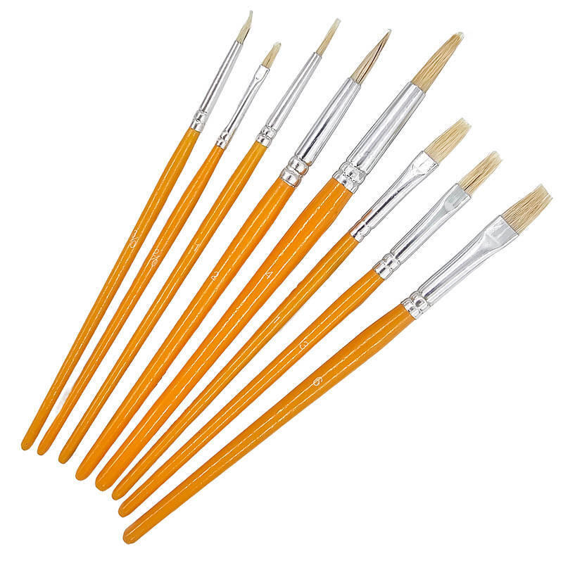 - Wytrzymałe drewniane uchwyty w pomarańczowym kolorze z oznaczeniem grubości pędzla