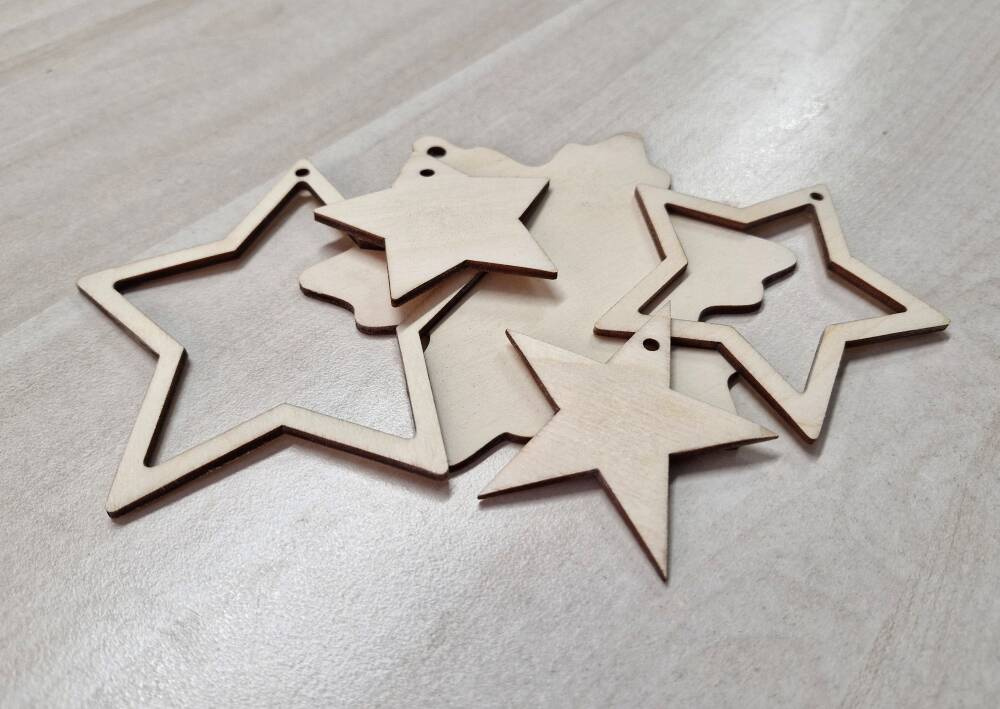 Drewniane ozdoby bombki świąteczne na choinkę Gwiazdy Mix wzorów