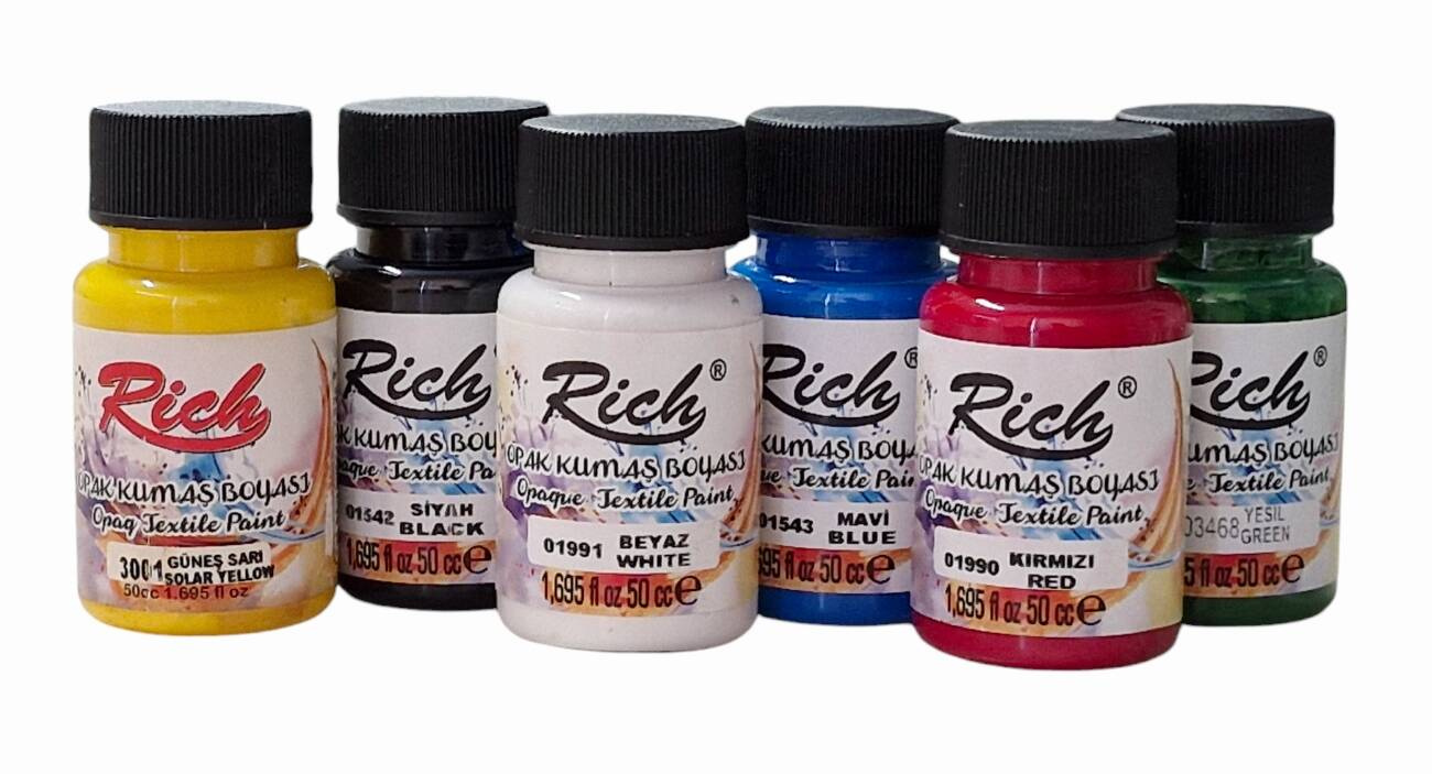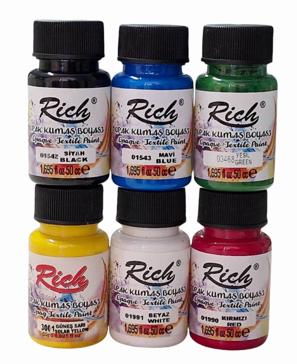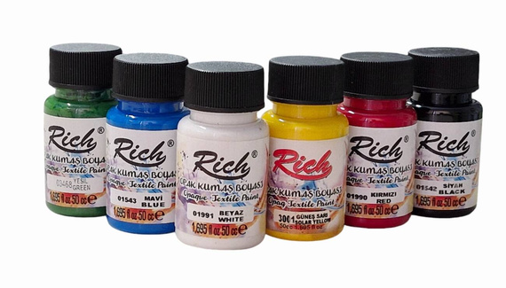 Zestaw farb akrylowych do tkanin Rich 6 kolorów