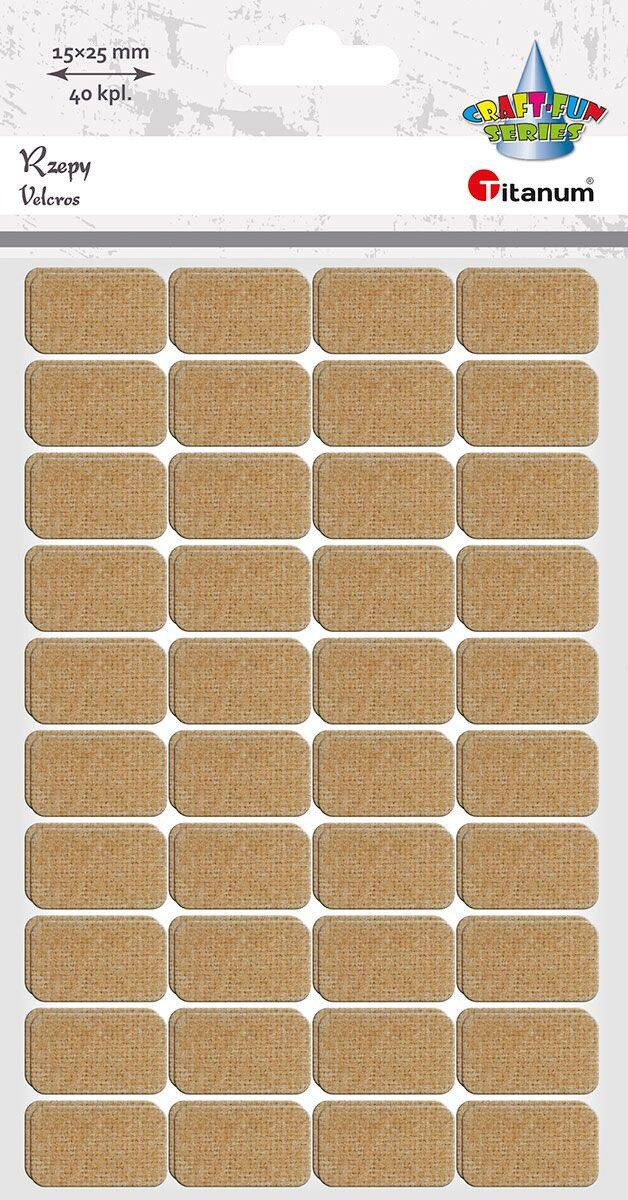 Rzepy samoprzylepne w kolorze kremowym to produkt, który pozwala na wygodne i wielokrotne łączenie oraz rozdzielanie elementów. Opakowanie zawiera 40 kompletów o wymiarach 15x25mm.