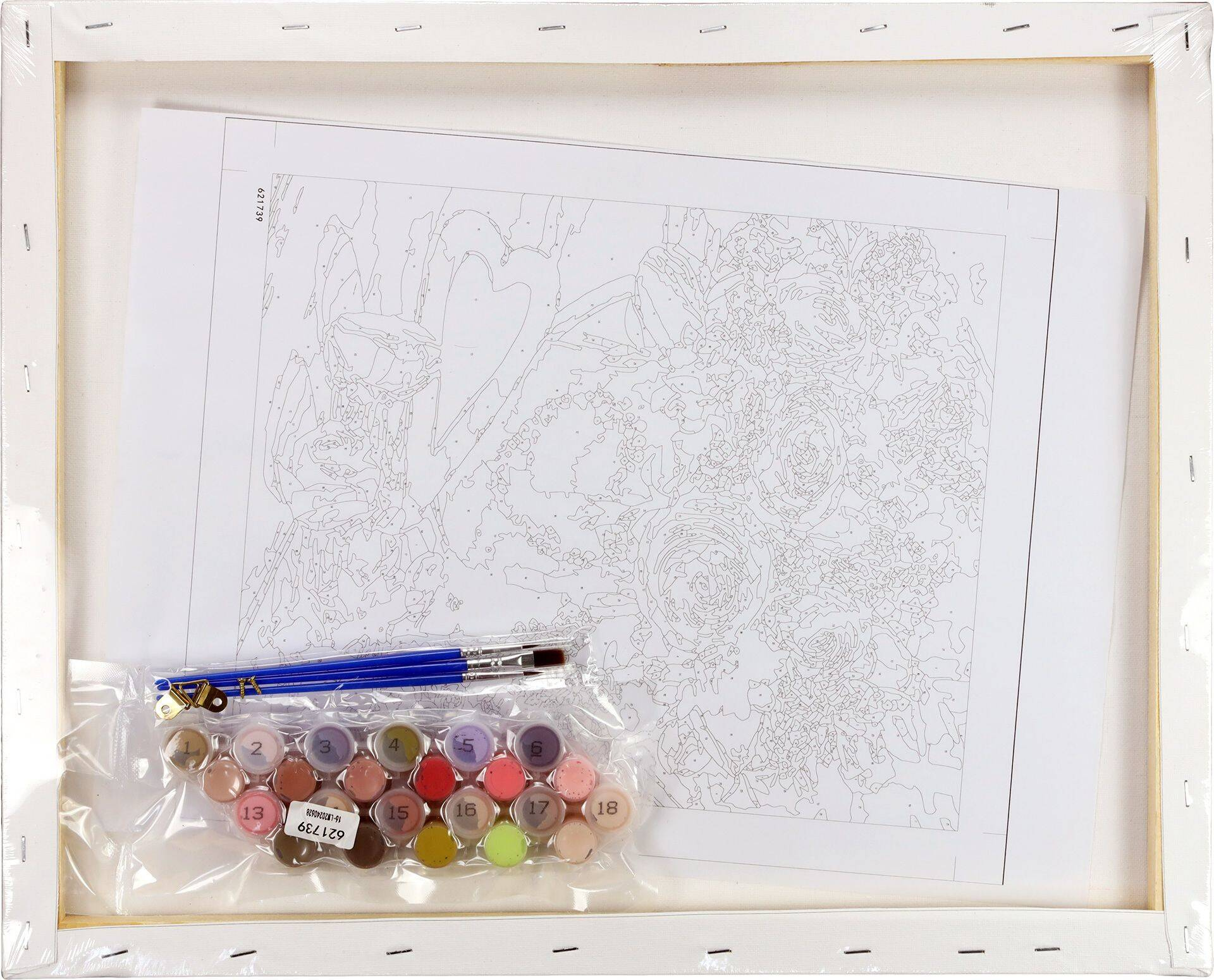 Płótno z nadrukiem – Na płótnie znajduje się nadrukowany obraz podzielony na obszary, z których każdy oznaczony jest numerem. Każdy numer odpowiada konkretnemu kolorowi farby.