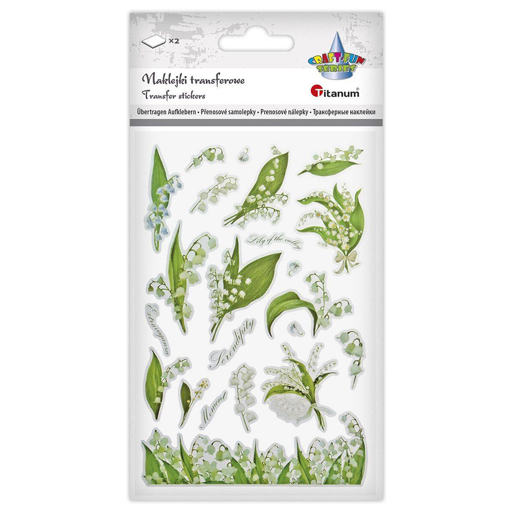 Naklejki transferowe o wzorze konwalii zamieszczone na 2 blistrach nadadzą wielu projektom perfekcyjne wykończenie.