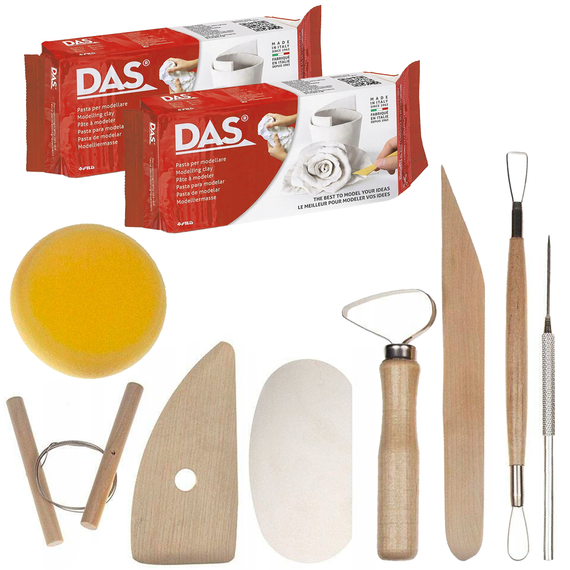 Rozpocznij swoją przygodę z rzeźbieniem lub wznieś swoje projekty na wyższy poziom dzięki profesjonalnemu zestawowi do pracy z gliną! W komplecie znajdziesz aż 2 opakowania gliny DAS po 500 g – jednej z najchętniej wybieranych glin samoutwardzalnych – oraz kompletny 8-elementowy zestaw narzędzi Loveart, który pozwoli Ci precyzyjnie kształtować, modelować i wykańczać każdy detal.