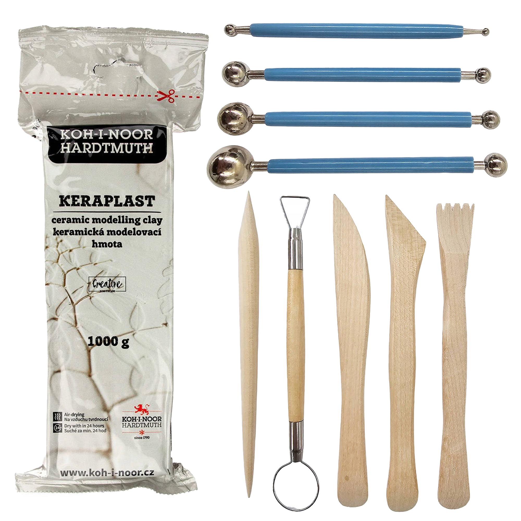Zestaw rzeźbiarski - glina samoutwardzalna 1kg Narzędzia 9 elementów