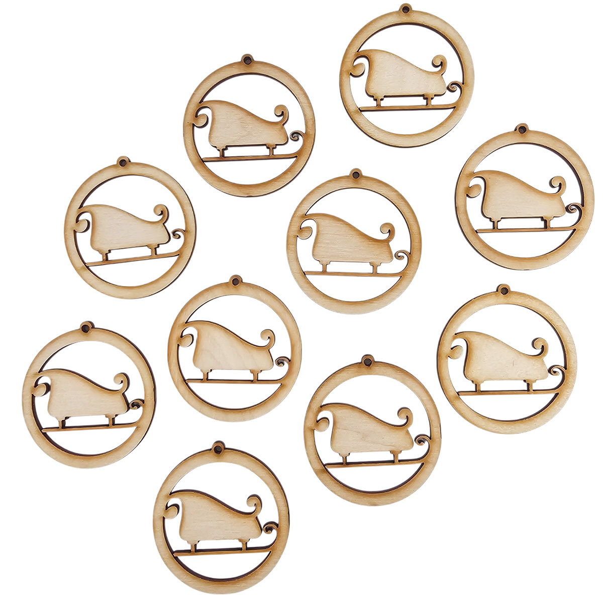 Drewniana ozdoba zawieszka bombka 6 cm - Sanie Mikołaja - 10szt